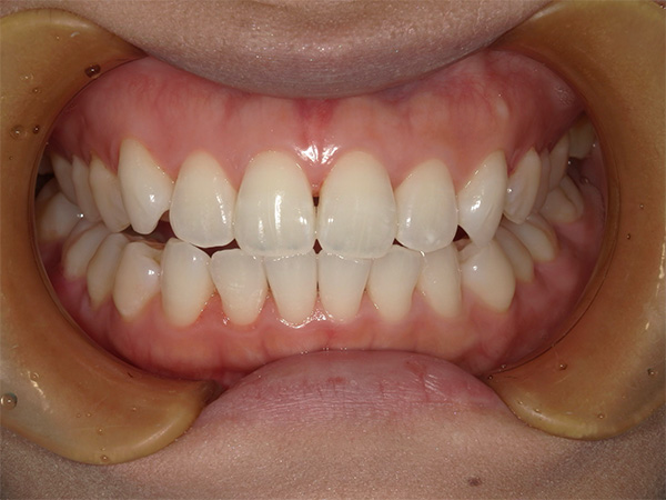 | 副作用・リスク | オフィスホワイトニング後、毎日2時間以上装着するホームホワイトニングを1~2か月行います。 治療の副作用として知覚過敏が発現しました。知覚過敏の発現頻度が高かったので、ホームホワイトニングは数日に一度、できる範囲で続けていただきました。 無理なく続けていただいたので、治療期間は少し長くなりました。 歯の反応も個人差があり、効果に差があることをご承知おき下さい。 |