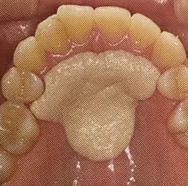 ガムを丸めて舌をスポットに押し付けたまま唾液を飲み込みます。これを5回繰り返します。